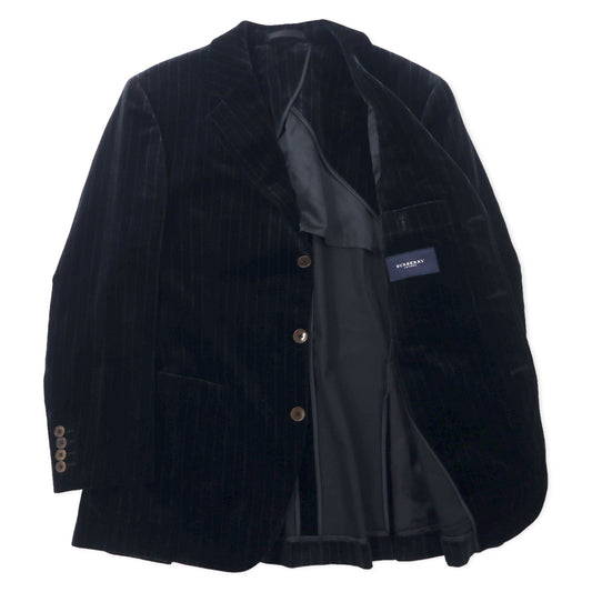 BURBERRY ベロア 3B テーラードジャケット 165 ブラック ストライプ コットン 日本製