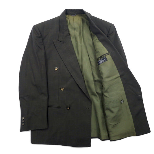 フランス製 90年代 Haute rive ダブル テーラードジャケット L カーキ チェック ウール ポリエステル