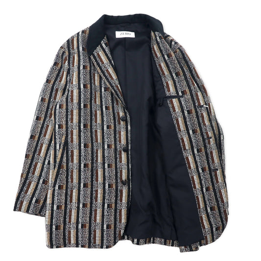ZERO ブランケットニット テーラードジャケット M マルチカラー グレンチェック 総柄 ウール 日本製 未使用品