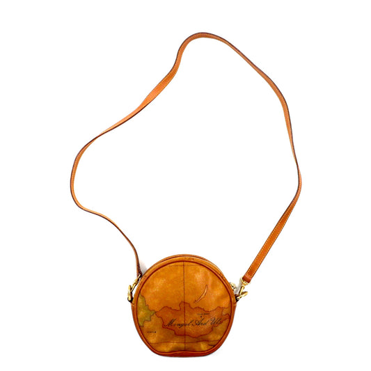 PRIMA CLASSE イタリア製 ラウンド ショルダーバッグ ポシェット ベージュ レザー PVC 世界地図柄 丸型
