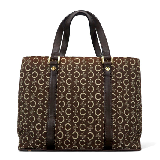 CELINE イタリア製 オールド Cマカダム ハンドバッグ トートバッグ ブラウン キャンバス 総柄 CE00