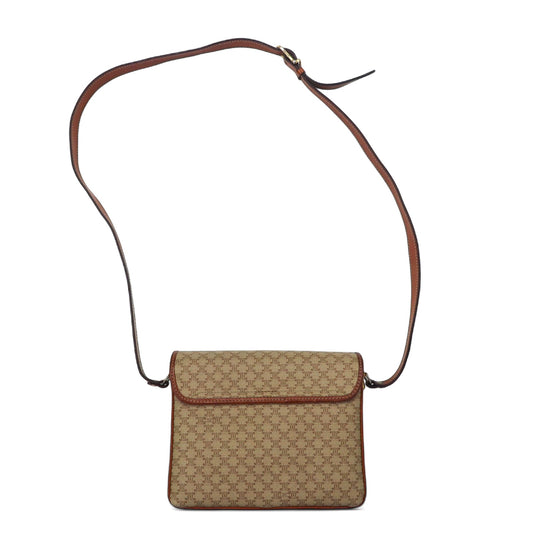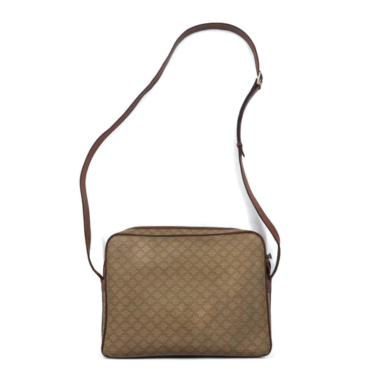 CELINE オールド マカダム ショルダーバッグ ブラウン PVC レザー ririジップ M08 イタリア製