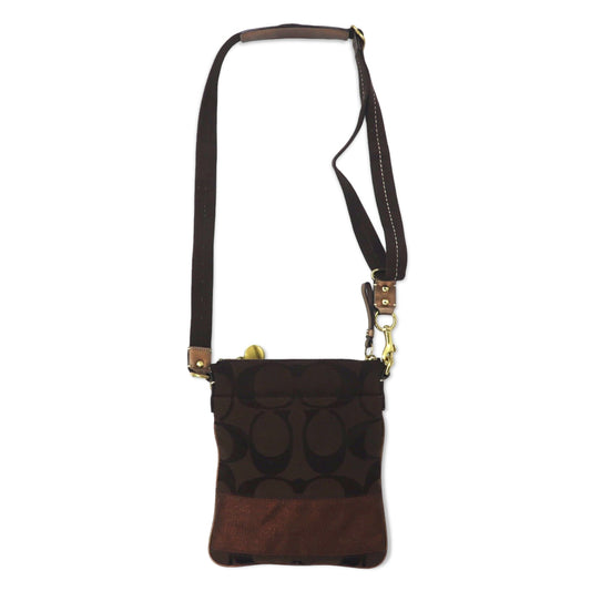 COACH シグネチャー ストライプ スイングパック ショルダーバッグ ブラウン キャンバス レザー 40758