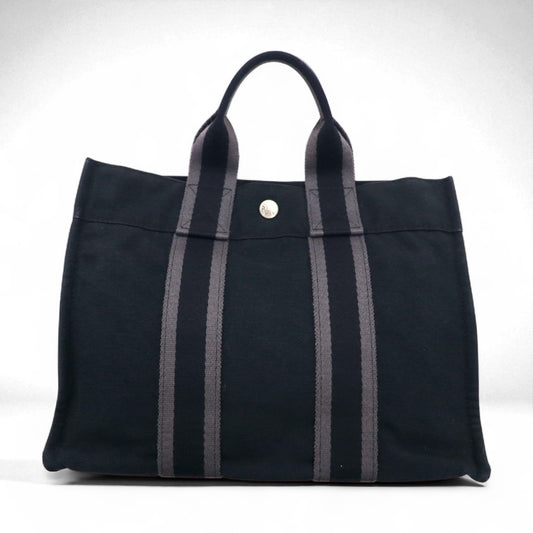 HERMES フールトゥ PM トートバッグ ハンドバッグ ブラック コットン キャンバス フランス製