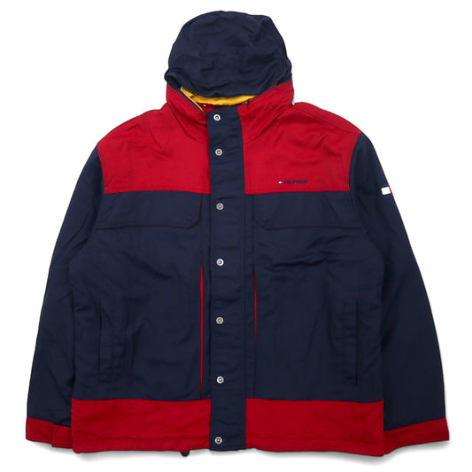 TOMMY HILFIGER 90年代 セーリングジャケット XXL ネイビー レッド ナイロン フード収納式 フリースライナー