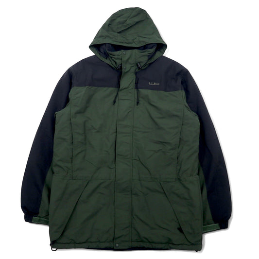 L.L.Bean マウンテンパーカー L カーキー ナイロン フード収納式 ロゴ刺繍 ダブルジップ ドローコード Thinsulate 中綿 OUK65