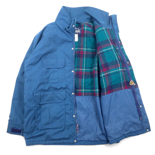 Woolrich 80年代 USA製 インサレーションジャケット L ナイロン ブルー ダブルジップ 裏地チェック 中綿 ドローコード