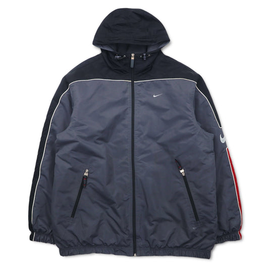 NIKE 90年代 Thermolite サーモライト 中綿 ナイロンジャケット XL グレー ナイロン スウッシュロゴ刺繍 黒タグ ドローコード