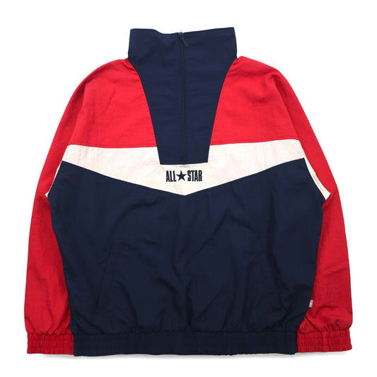 CONVERSE ハーフジップ ハイネック ナイロンジャケット M ネイビー トリコロール