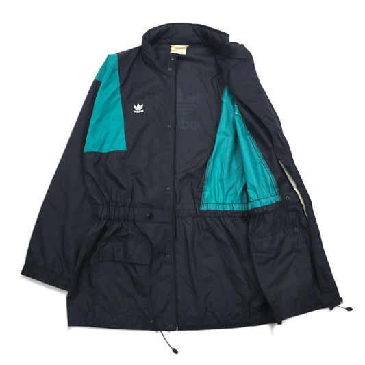 adidas 90年代 ナイロンジャケット XL ブラック ナイロン トレフォイルロゴ ドローコード フード収納式 銀タグ