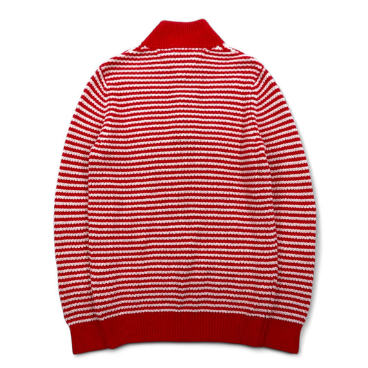 TOMMY HILFIGER ハーフボタン ワッフルニットセーター L レッド ボーダー ローゲージ