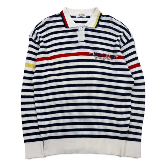 CHAPS ハーフボタン コットンニット セーター XL ホワイト ボーダー