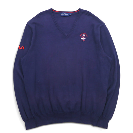 POLO GOLF RALPH LAUREN Vネック コットンニット セーター L ネイビー ポニー ロゴ刺繍 Royal St George's