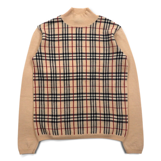 BURBERRY ノバチェック ハイネック カシミヤ混 ニット セーター M ベージュ ウール モックネック