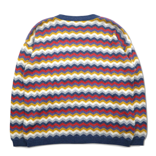CHAPS RALPH LAUREN 90年代 日本製 クルーネック 総柄 ニット セーター M ネイビー ウール