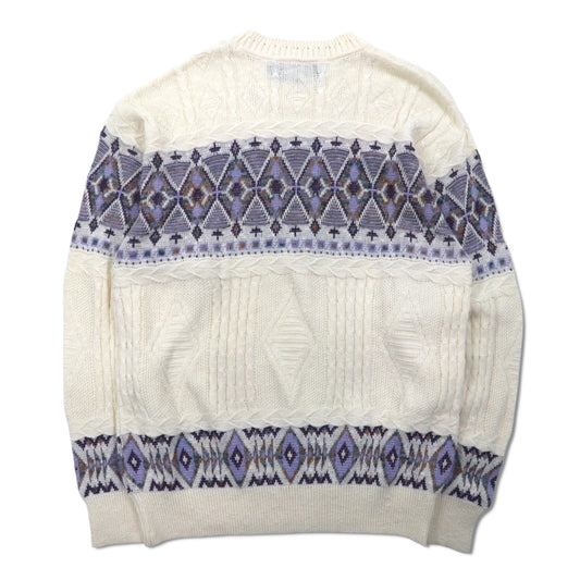 J.C.PENNEY 80年代 モックネック ニット セーター XL 生成り アクリル ノルディック柄