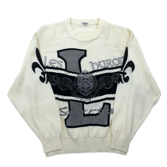 Vintage 90s Japan Made Street Sweater LESHURON SPORTS UOMO 刺繍 ニット セーター XL ホワイト