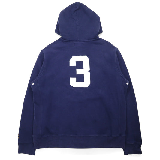 Polo by Ralph Lauren 90年代 デュアルマッチ 刺繍 ハーフボタン パーカー XL ネイビー コットン ナンバリング