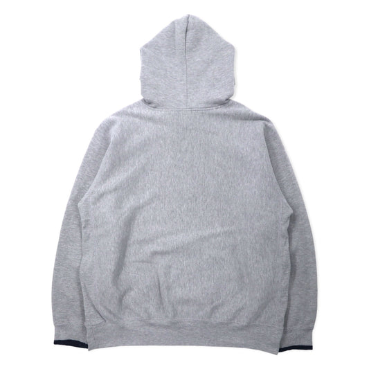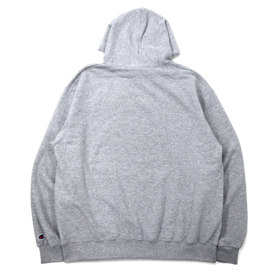 Champion リバースウィーブ プルオーバーパーカー XL グレー コットン 青単タグ 復刻 カレッジ アーチロゴ 2段プリント