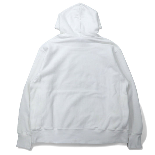 Champion リバースウィーブ パーカー XXL ホワイト コットン 裏起毛 HORNELL 染み込みプリント 青単タグ 復刻 REVERSE WEAVE Pullover Hooded SWEATSHIRT C3-W111