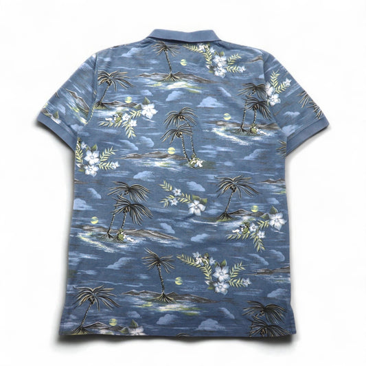 BIG DOGS 90年代 ハワイアン ポロシャツ M ブルー 総柄 コットン ポリエステル