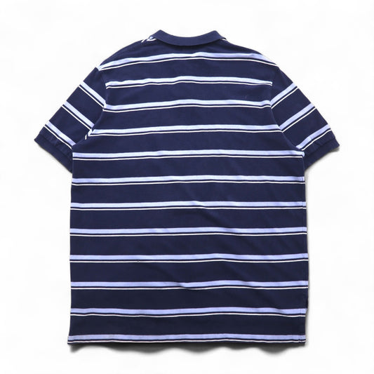 Polo by Ralph Lauren 90年代 ラインデザイン ポロシャツ 3XL ネイビー 鹿の子 エンブレムロゴ刺繍