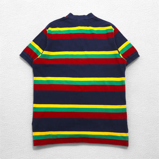 Polo by Ralph Lauren 90年代 マルチボーダー ポロシャツ L ネイビー ラスタカラー 鹿の子 スモールポニー刺繍
