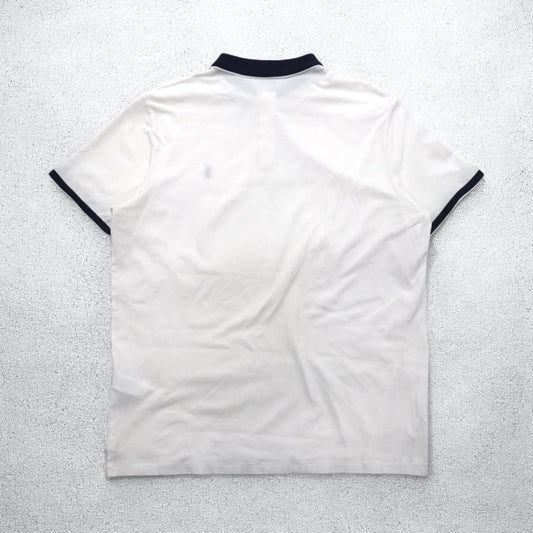 POLO RALPH LAUREN リブライン ポロシャツ XL ホワイト コットン 鹿の子 スモールポニー刺繍