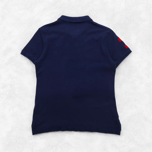 POLO RALPH LAUREN ビッグポニー刺繍 THE SKINNY POLO ポロシャツ L ネイビー コットン 鹿の子 USA 星条旗