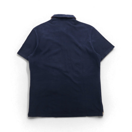 BURBERRY BRIT ノバチェック切り替え ポロシャツ XL ネイビー コットン 鹿の子 ワンポイントロゴ刺繍 トルコ製