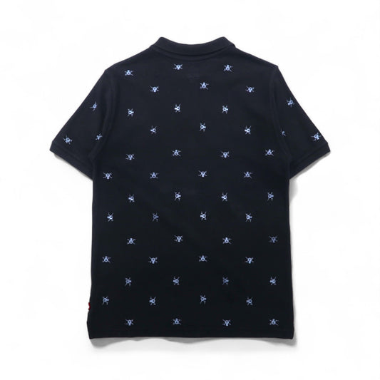 stussy スカル刺繍 ポロシャツ M ブラック コットン 鹿の子 総柄