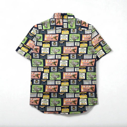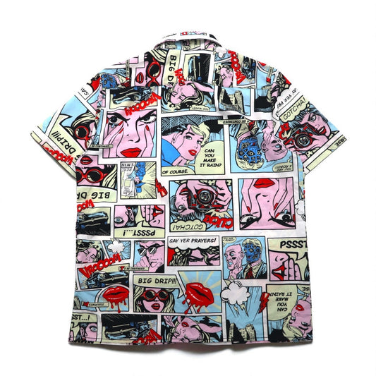 OH SNAP BY DRILL CLOTHING Co. アメコミ 半袖 シャツ L マルチカラー 総柄 ポップアート ストレッチ