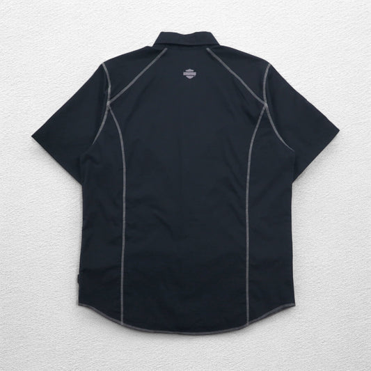 HARLEY DAVIDSON RACING 半袖 レーシングシャツ XL ブラック コットン ダブルポケット バックロゴ刺繍