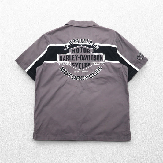 HARLEY DAVIDSON 半袖 ワークシャツ L グレー ブラック バックロゴ刺繍