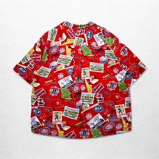 Lee SPORT 90年代 MLB 開襟 オープンカラー アロハシャツ XL レッド レーヨン 総柄
