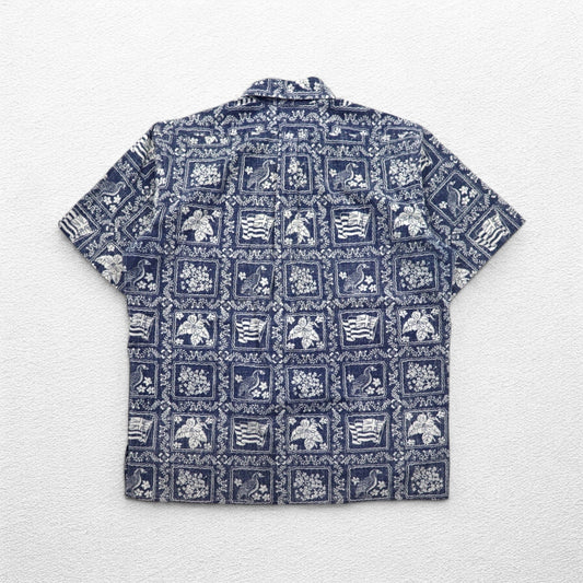 reyn spooner 90年代 ハワイ製 ビキニタグ ハワイアン アロハシャツ L ネイビー 総柄