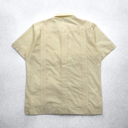 90年代 SUN Ⅱ ボックス キューバシャツ L クリーム ポリエステル コットン 刺繍