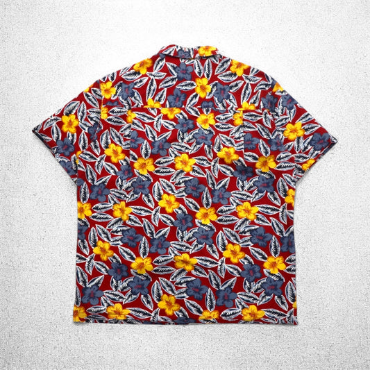 CHAPS RALPH LAUREN 90年代 アロハシャツ L レッド コットン 総柄 ハイビスカス 胸ポケット