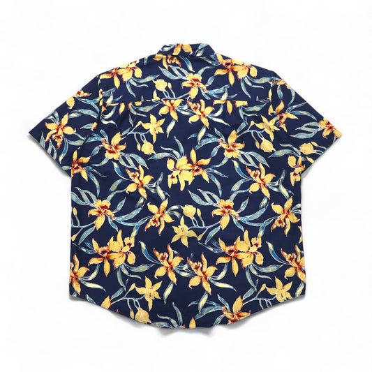 90年代 CROSSINGS ボタンダウン 花柄 アロハシャツ XL ネイビー コットン 総柄 未使用品