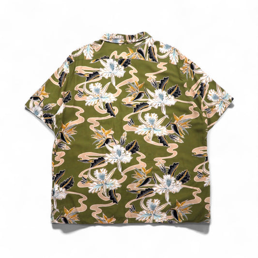 SUN SURF ( 東洋エンタープライズ ) 初期 旧タグ 和柄 鶴 アロハシャツ M カーキ レーヨン 511 M3241B