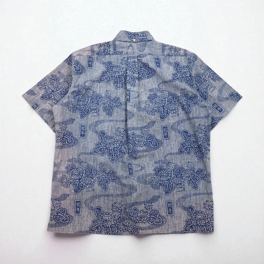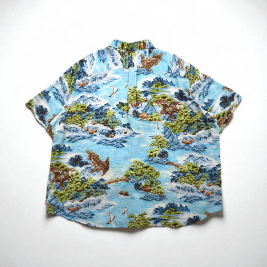RALPH LAUREN 和柄 ビッグサイズ ボタンダウン アロハシャツ 3XL ブルー レーヨン ビスコース 総柄