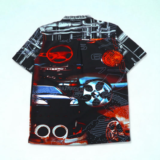 FUBU 00年代 半袖 フルグラフィックシャツ XL ブラック 総柄 ポリエステル