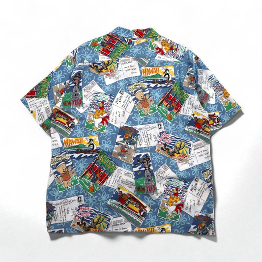 Reyn Spooner × WARNER BROS. ルーニーチューンズ LOONEY TUNES アロハシャツ XL ブルー レーヨン 開襟 オープンカラー 総柄 キャラクター