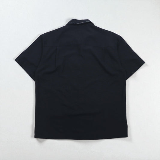 HAVANA JACK'S CAFE オープンカラー 開襟 キューバシャツ L ブラック レーヨン ポリエステル 刺子 刺繍 ヤシの木