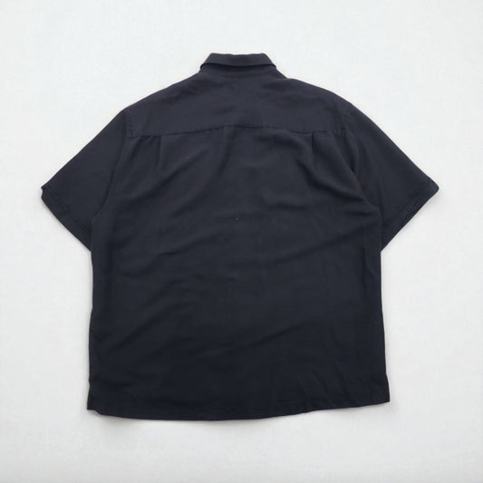 Tommy Bahama シルク 半袖 オープンカラーシャツ 開襟 ボックスシャツ XL ブラック バックロゴ刺繍