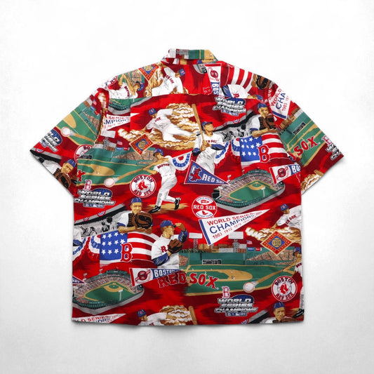 Reyn Spooner アロハシャツ L レッド 総柄 コットン MLB BOSTON RED SOX 胸ポケット