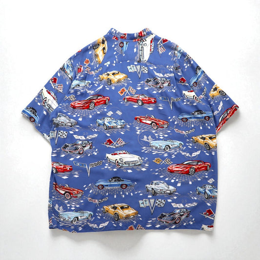 ART OF EDDY Y by REYN SPOONER 90年代 ハワイ製 クラシックカー アロハシャツ XL ブルー スパンレーヨン