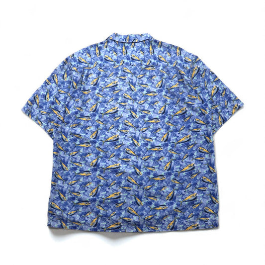 Reyn Spooner 90年代 ハワイ製 ビキニタグ プルオーバー 半袖 ボタンダウン アロハシャツ M ブルー コットン 魚モチーフ