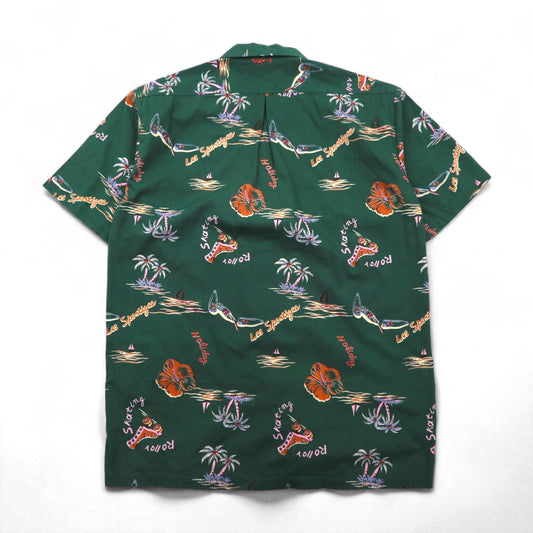 BIG JOHN 90年代 オープンカラー アロハシャツ ボックスシャツ S グリーン コットン 総柄 ビーチ