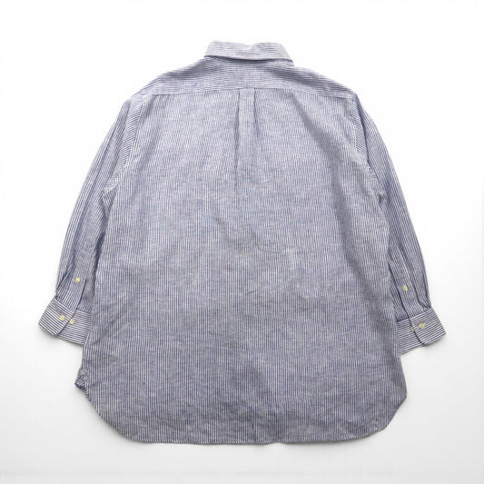 Polo Ralph Lauren ボタンダウン リネン シャツ XL ブルー 麻 ストライプ CLASSIC FIT EASY CARE ビッグサイズ